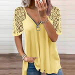Effen kleur kanten los T-shirt met korte mouwen en rits